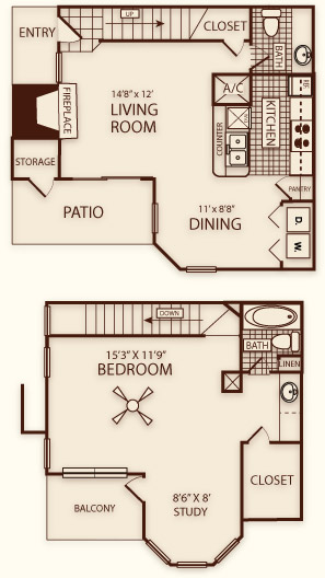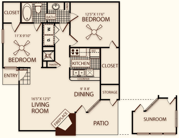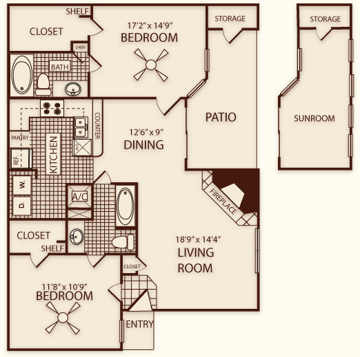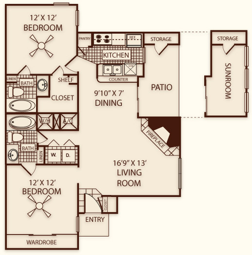 - 2 bed / 2 bath - 1045-1196 sq. ft.